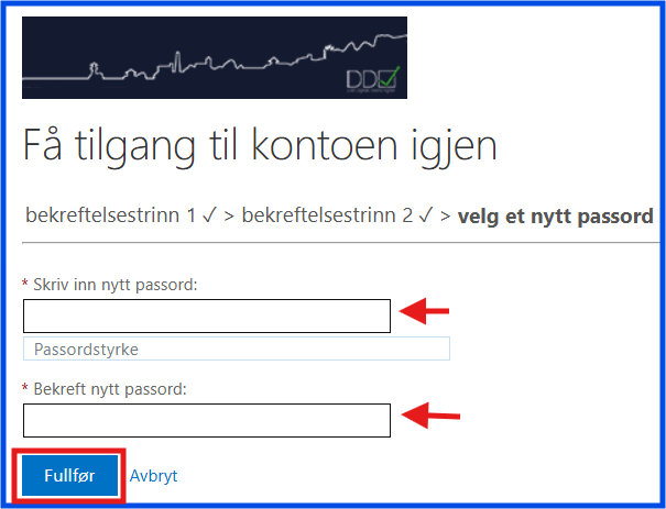 Alle ansatte i DDV-samarbeidet har mulighet til å tilbakestille passordet sitt via Microsoft. Følg stegene under for veiledning: