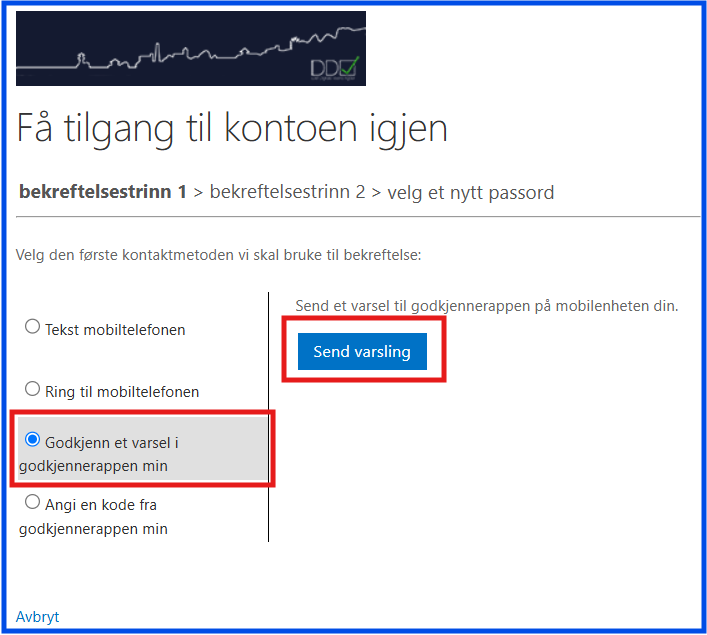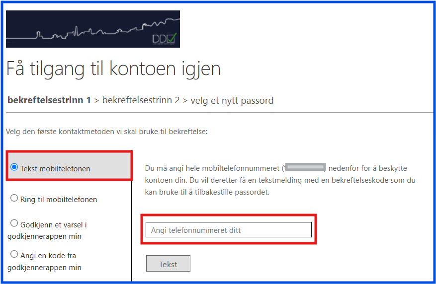 TIlbakestill passord via ID-Port, Bank-ID eller SMS