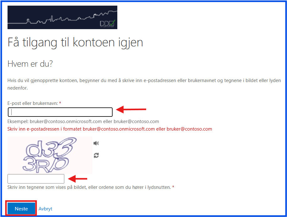 Skriv inn e-posten din og tegnene som vises på bilde.